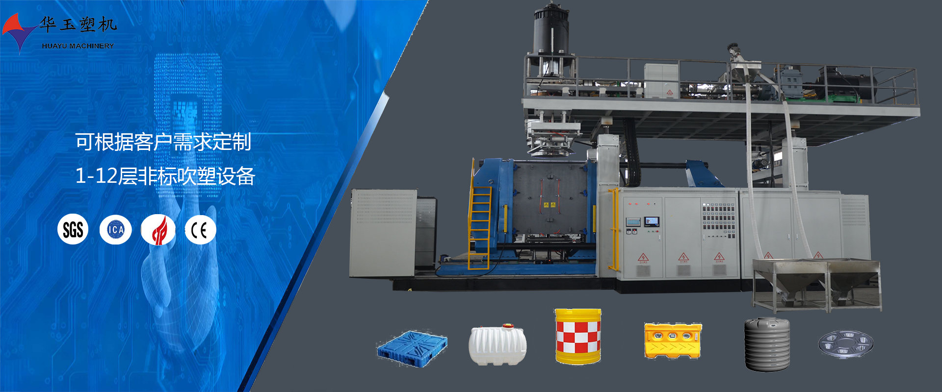 濰坊市華玉塑料機(jī)械有限公司創(chuàng)辦于貳零零貳年,是超大型全自動(dòng)中空吹塑設(shè)備專業(yè)生產(chǎn)廠家。公司融合國內(nèi)外先進(jìn)技術(shù)和理念,專業(yè)設(shè)計(jì)、生產(chǎn)、銷售一層到十層的大型全自動(dòng)中空成型機(jī)組。我公司生產(chǎn)的各型號(hào)吹塑機(jī)可生產(chǎn)50升到30,000升的各類塑料水桶,噸桶、雙環(huán)桶、水馬、路錐、隔離墻托盤、桌板、浮筒、皮劃艇、工具箱包等中空制品。優(yōu)良的品質(zhì)、穩(wěn)定的性能、優(yōu)越的性價(jià)比使公司產(chǎn)品不僅暢銷國內(nèi)市場,并出口到亞洲、東南亞、中東、歐洲、北美、南美、非洲等80多個(gè)國家和地區(qū),深受客戶的好評(píng)...